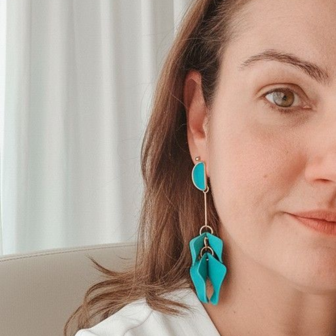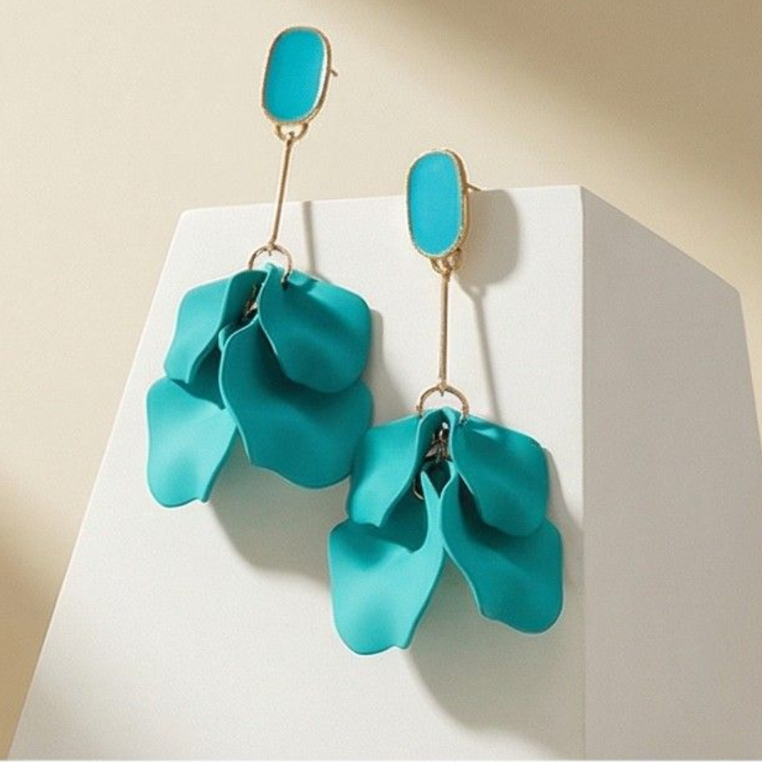 Brincos pétalas de flores em acrílico turquesa